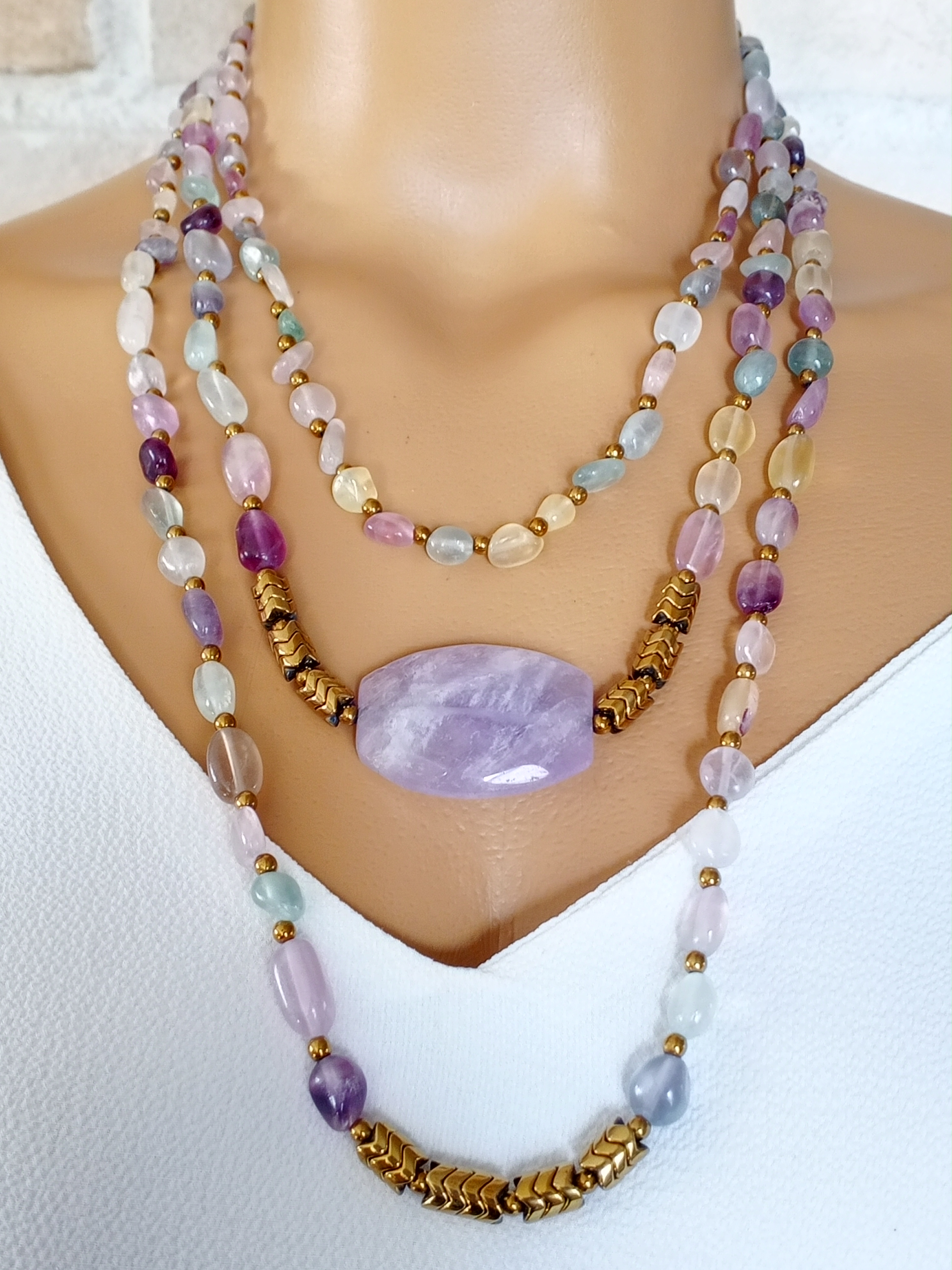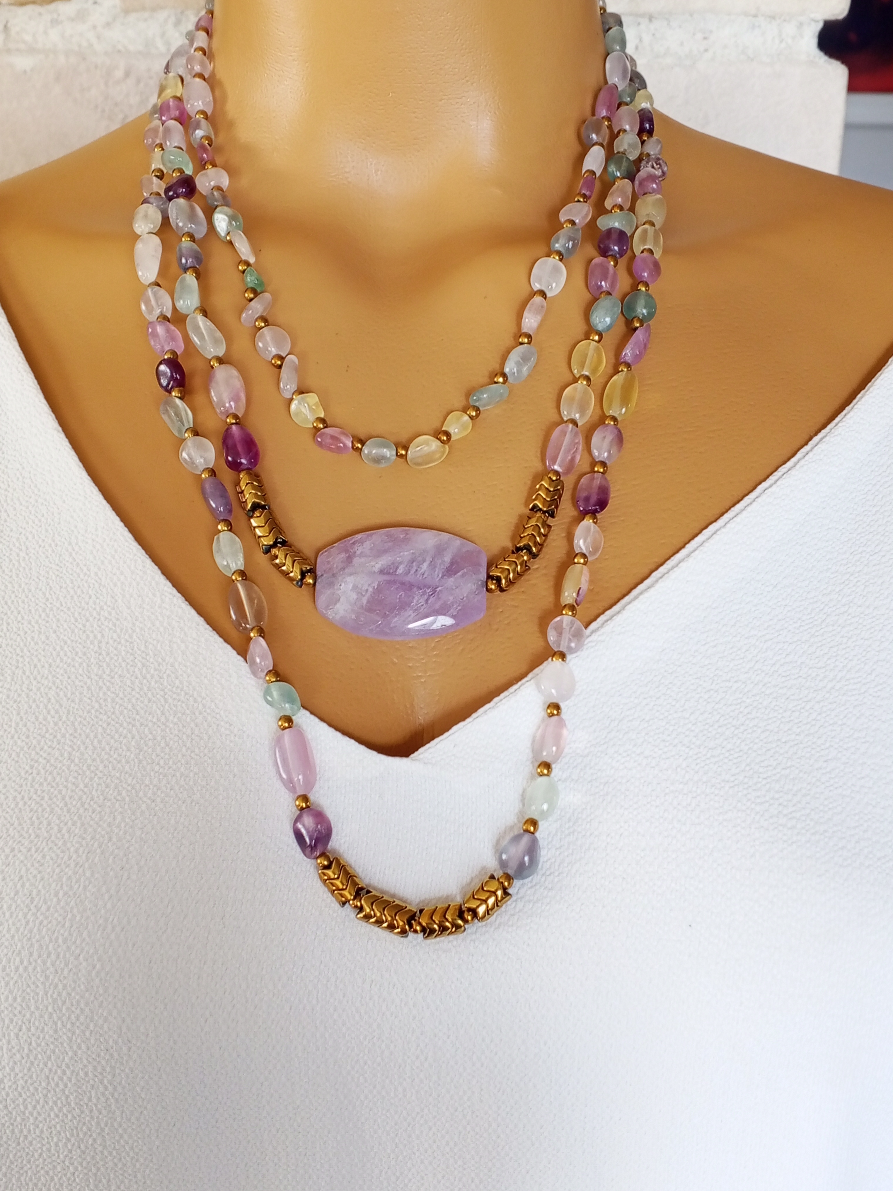 FLORİT - AMETİST - HEMATİT DOĞALTAŞ İKİLİ KOLYE