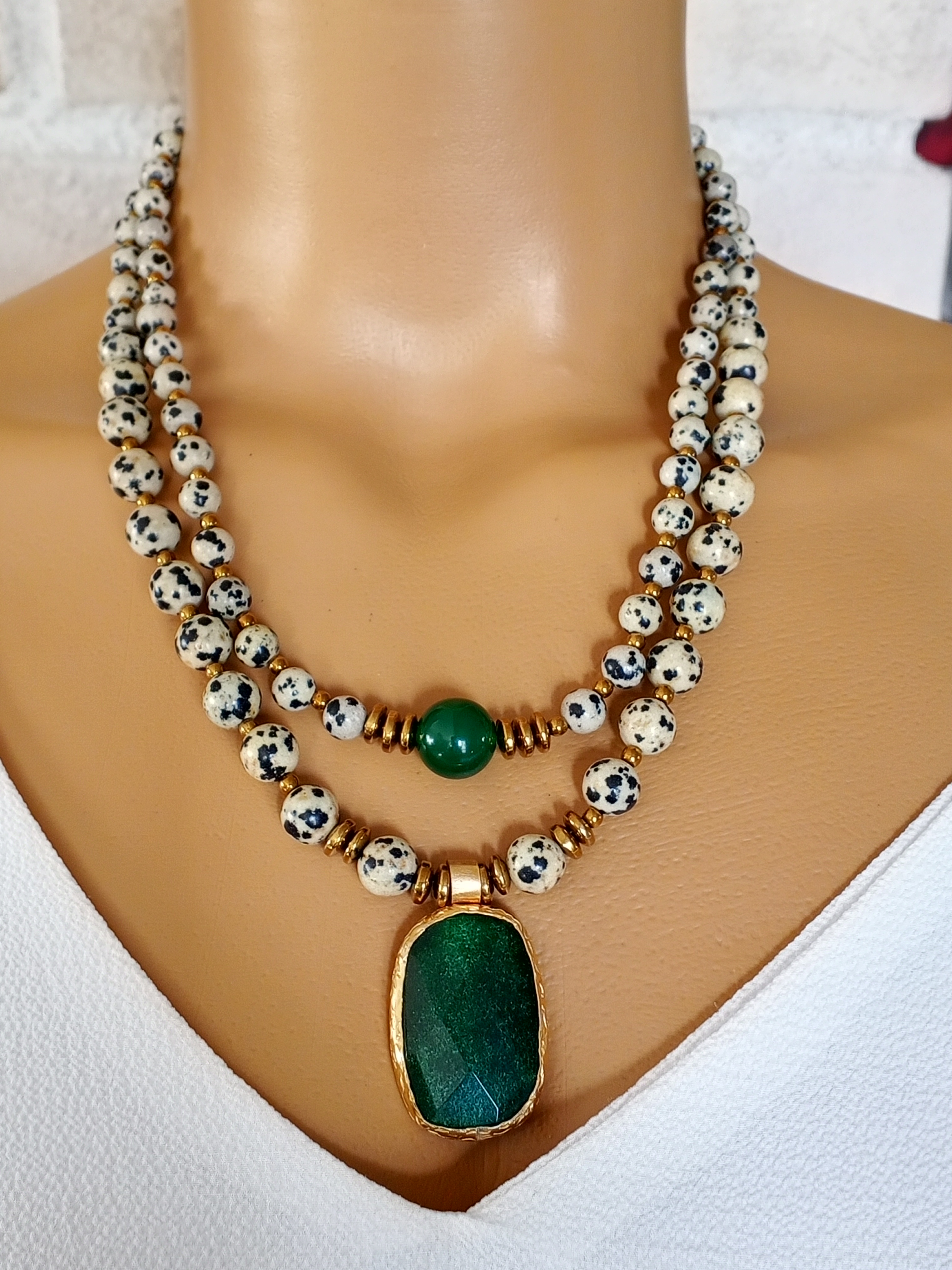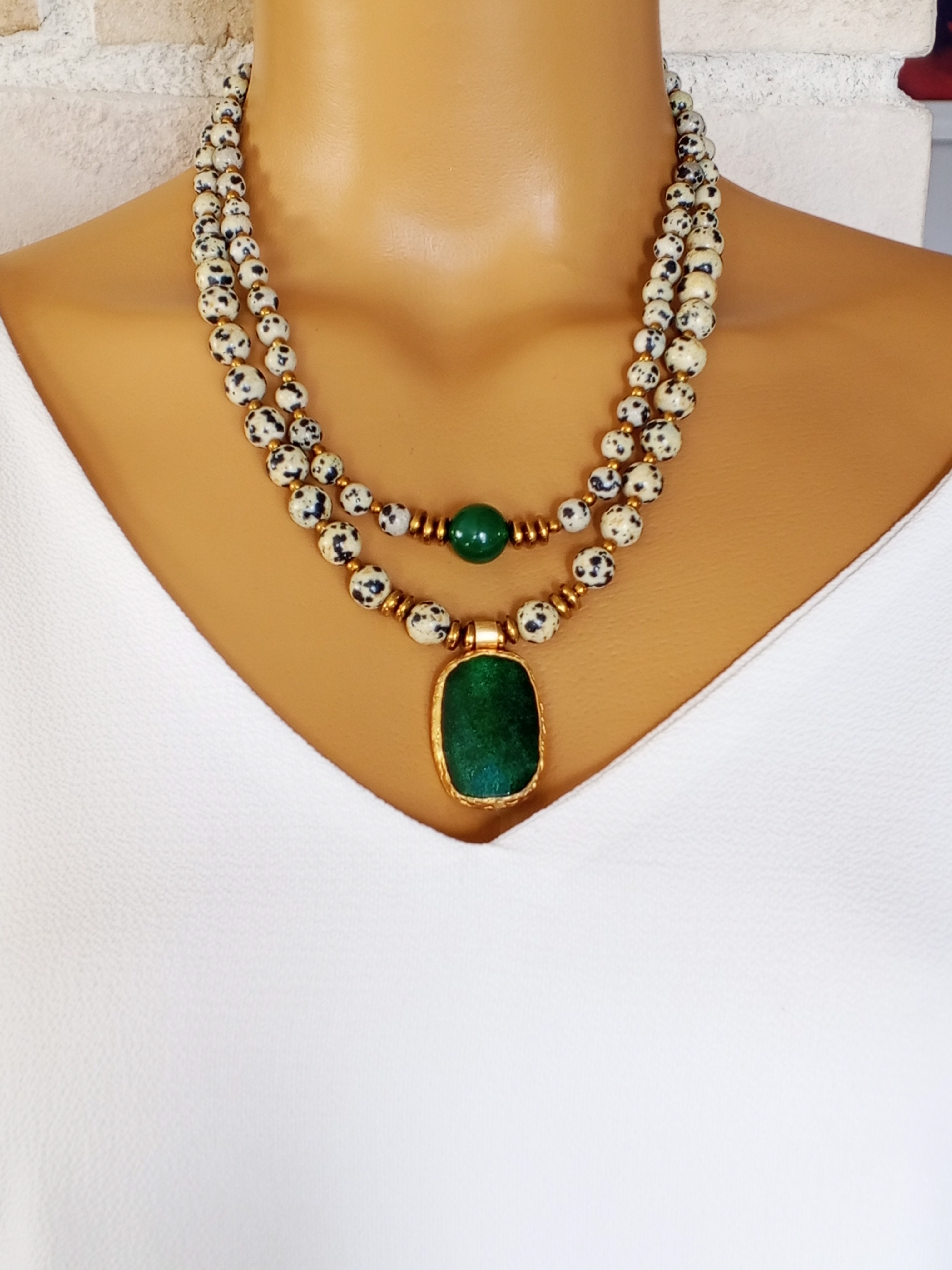 JASPER VE YEŞİI TAŞI İKİLİ KOLYE