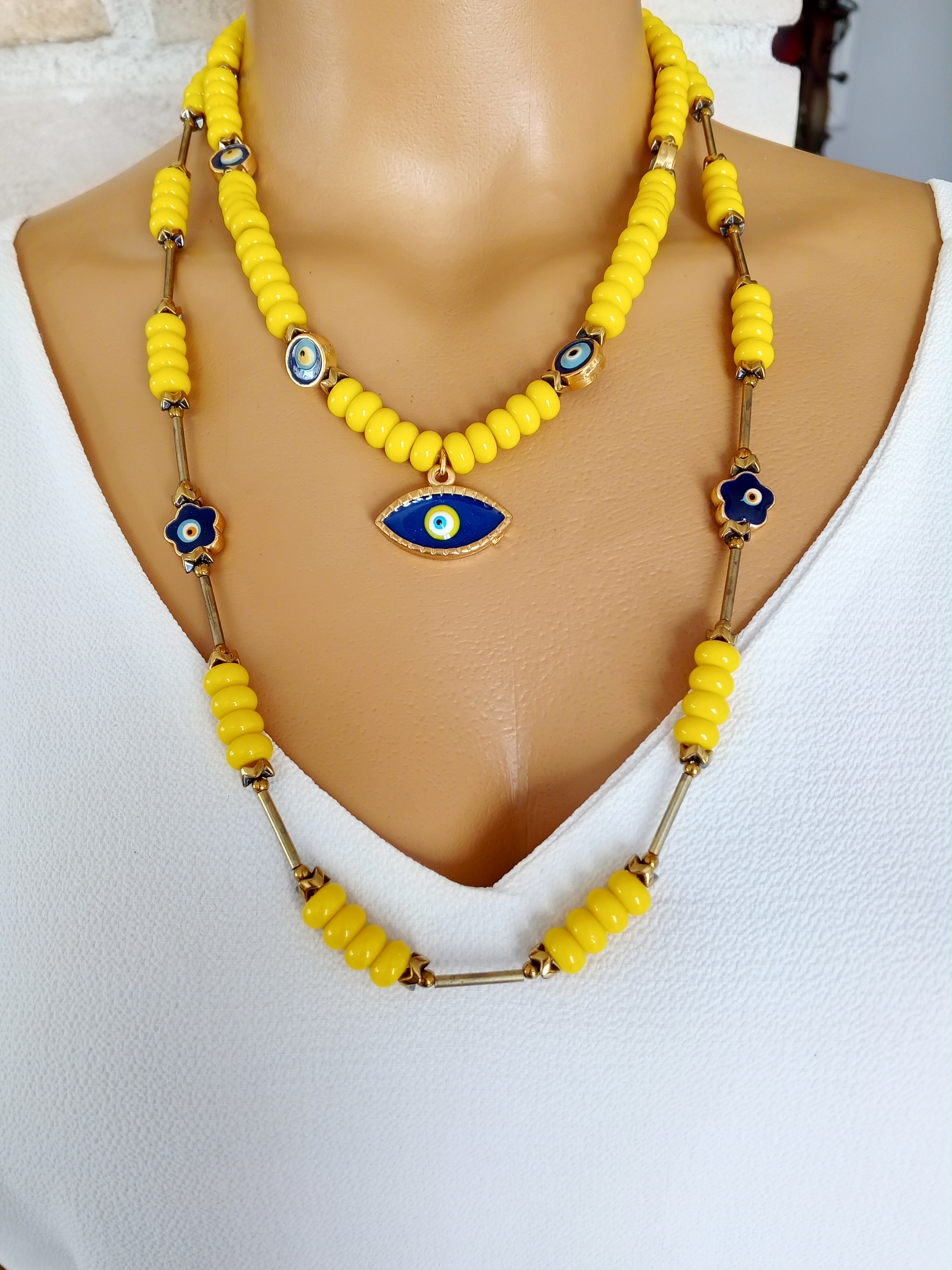 Şıklığı ve zarafeti bir araya getiren SARI CAM İKİLİ GÖZLÜ KOLYE, her kadının takı koleksiyonunda mutlaka yer alması gereken eşsiz bir parçadır. Bu özel kolye, modern tasarımı ve dikkat çekici renk kombinasyonlarıyla öne çıkarken, her tarzdan kıyafeti mükemmel bir şekilde tamamlar.