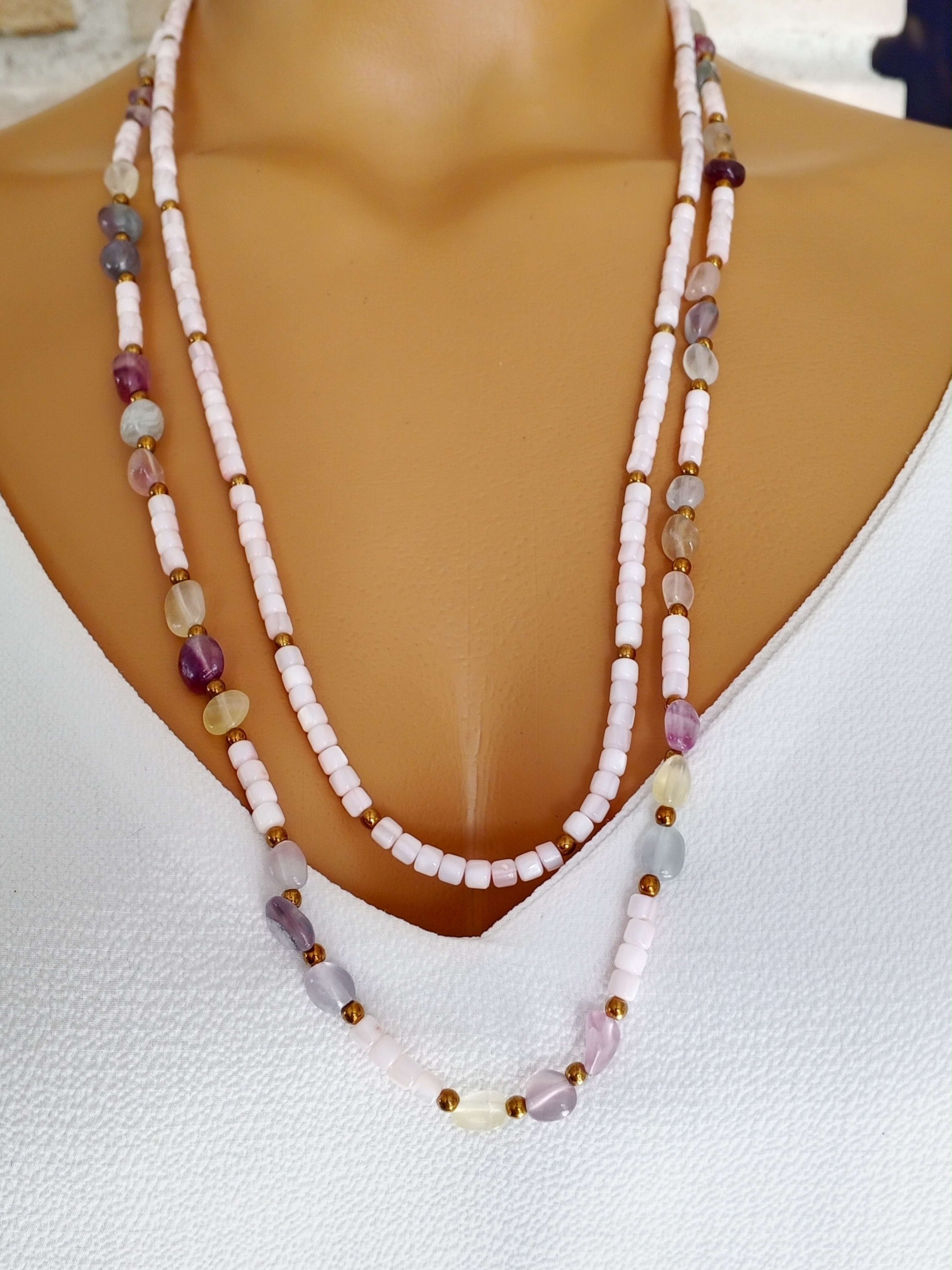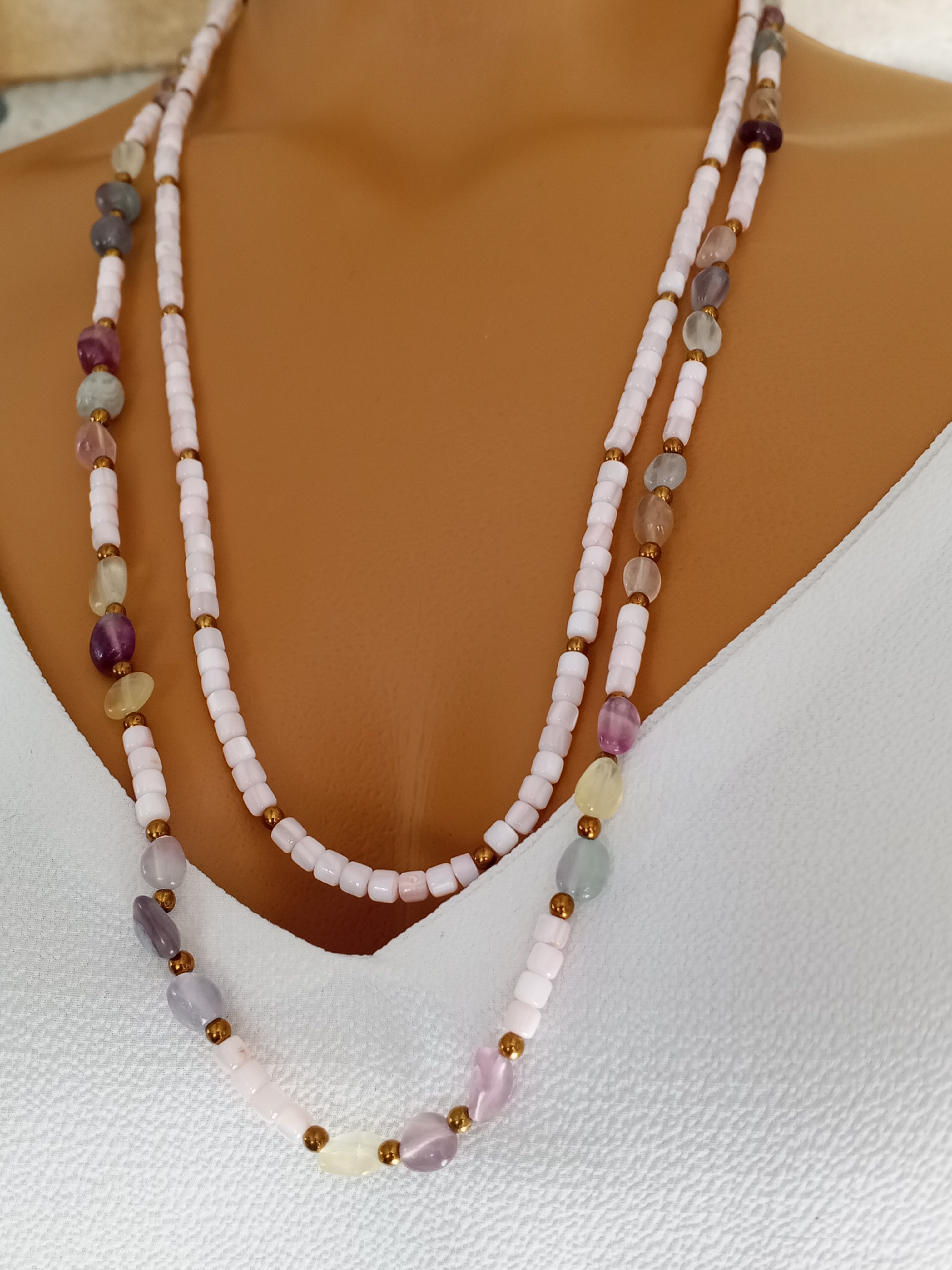 SEDEF VE AMETİST İKİLİ UZUN KOLYE