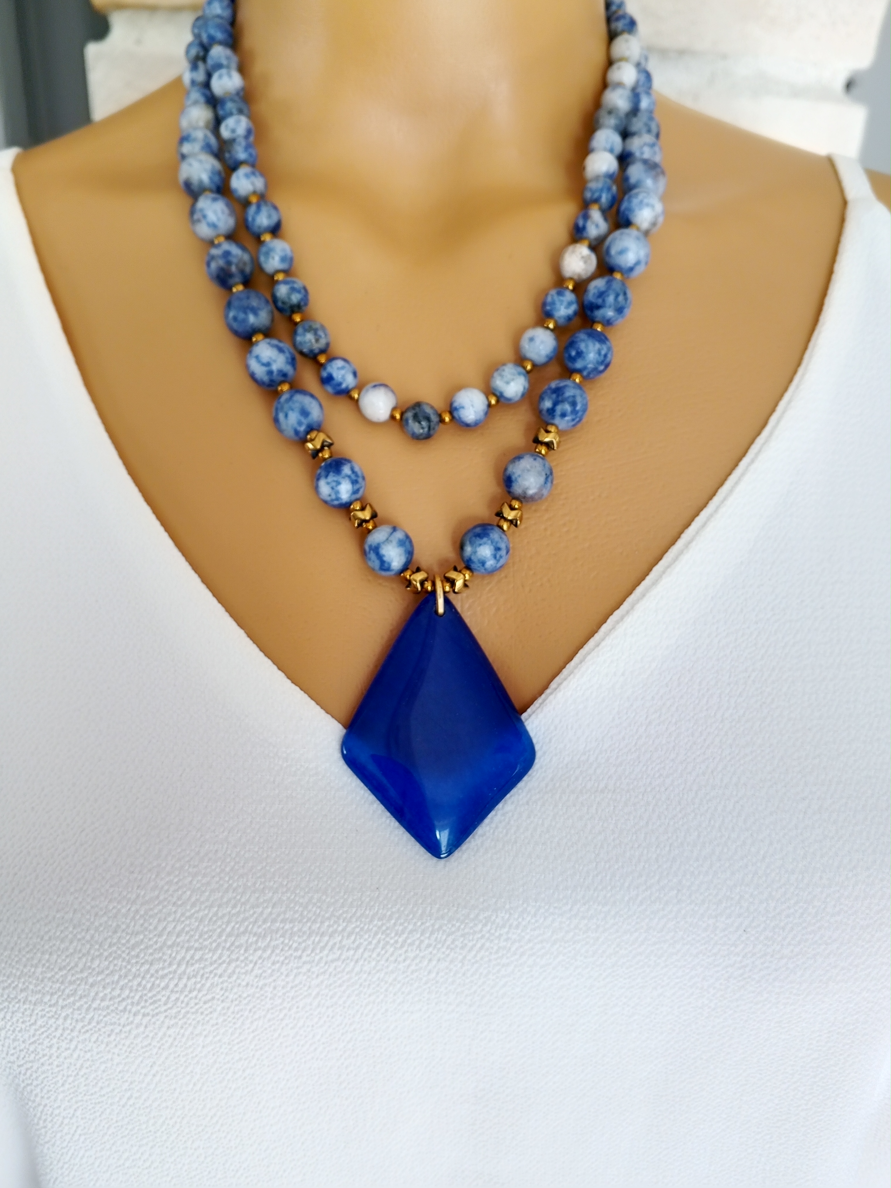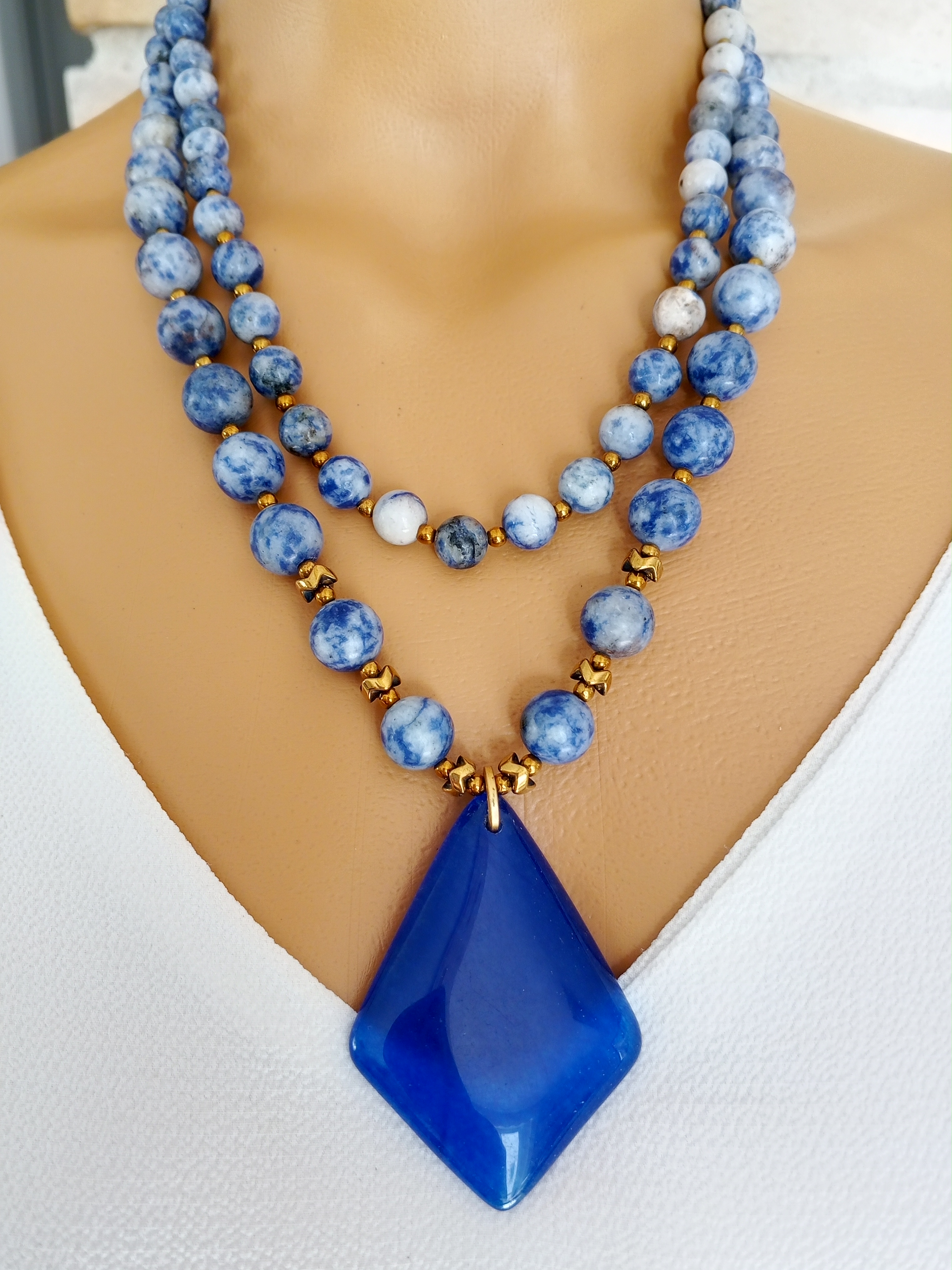 SODALİT -HEMATİT ,İKİLİ KOLYE