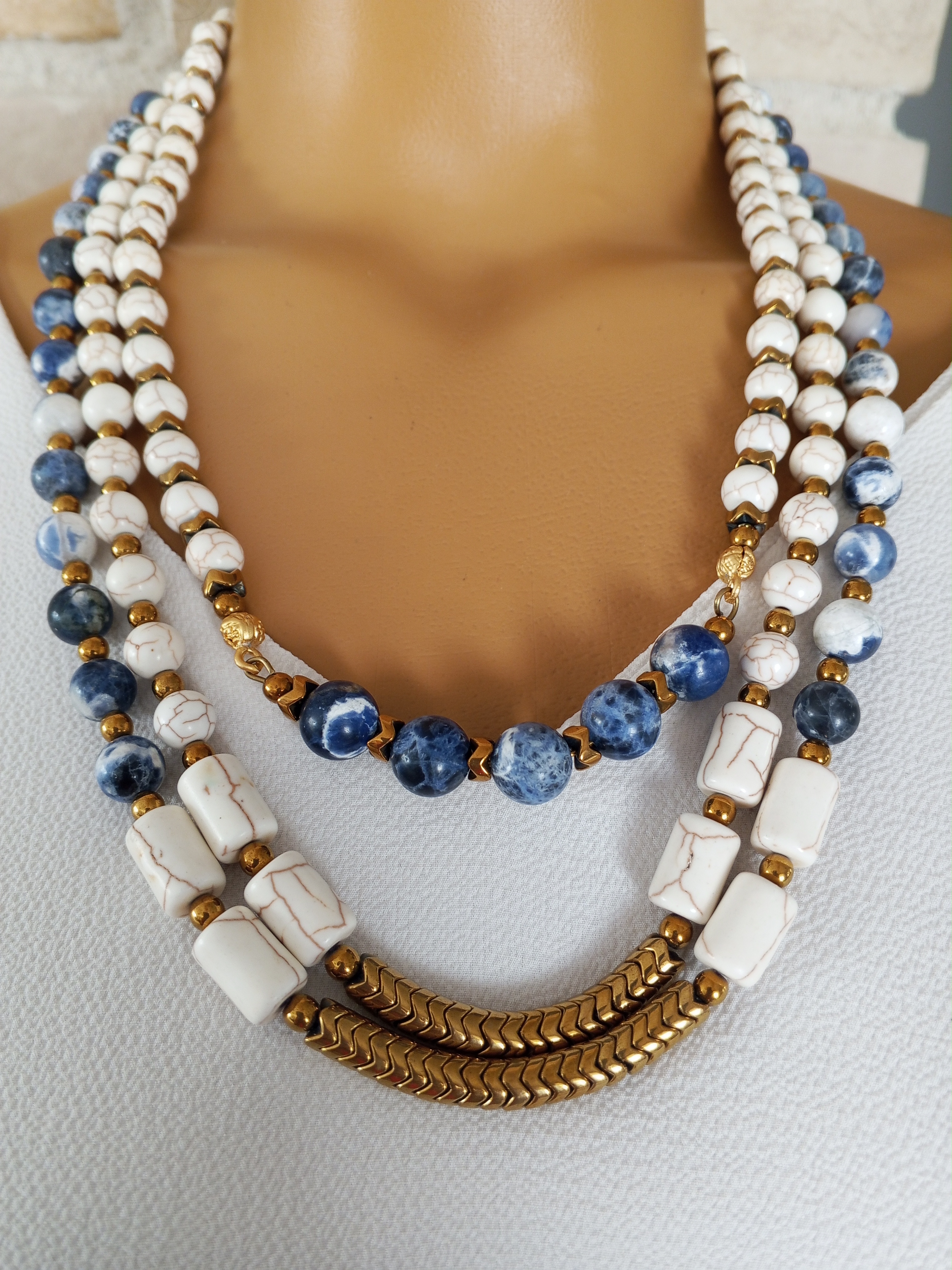 Sodalit - Turkuaz ve Hematit Çoklu Kolye
