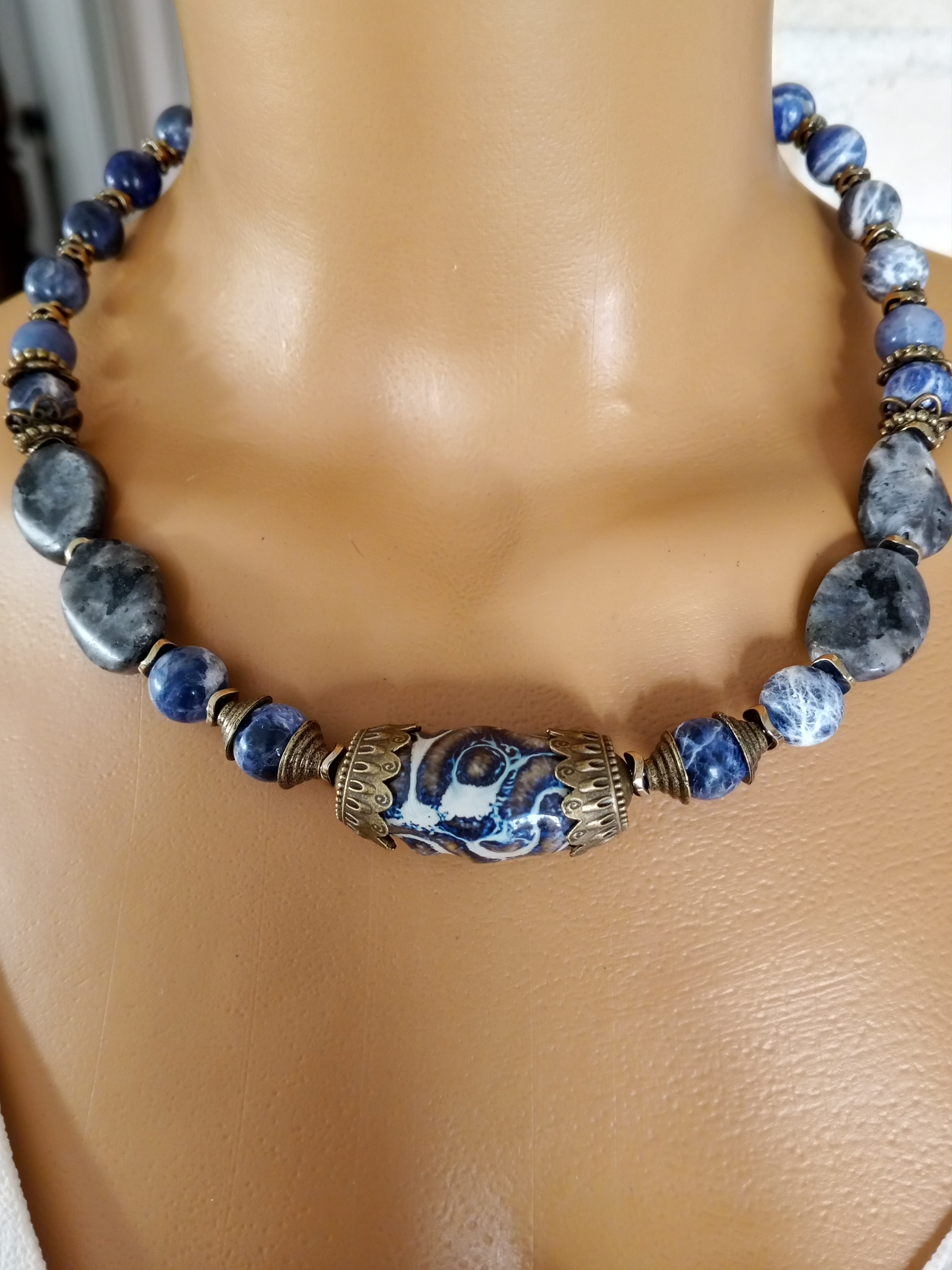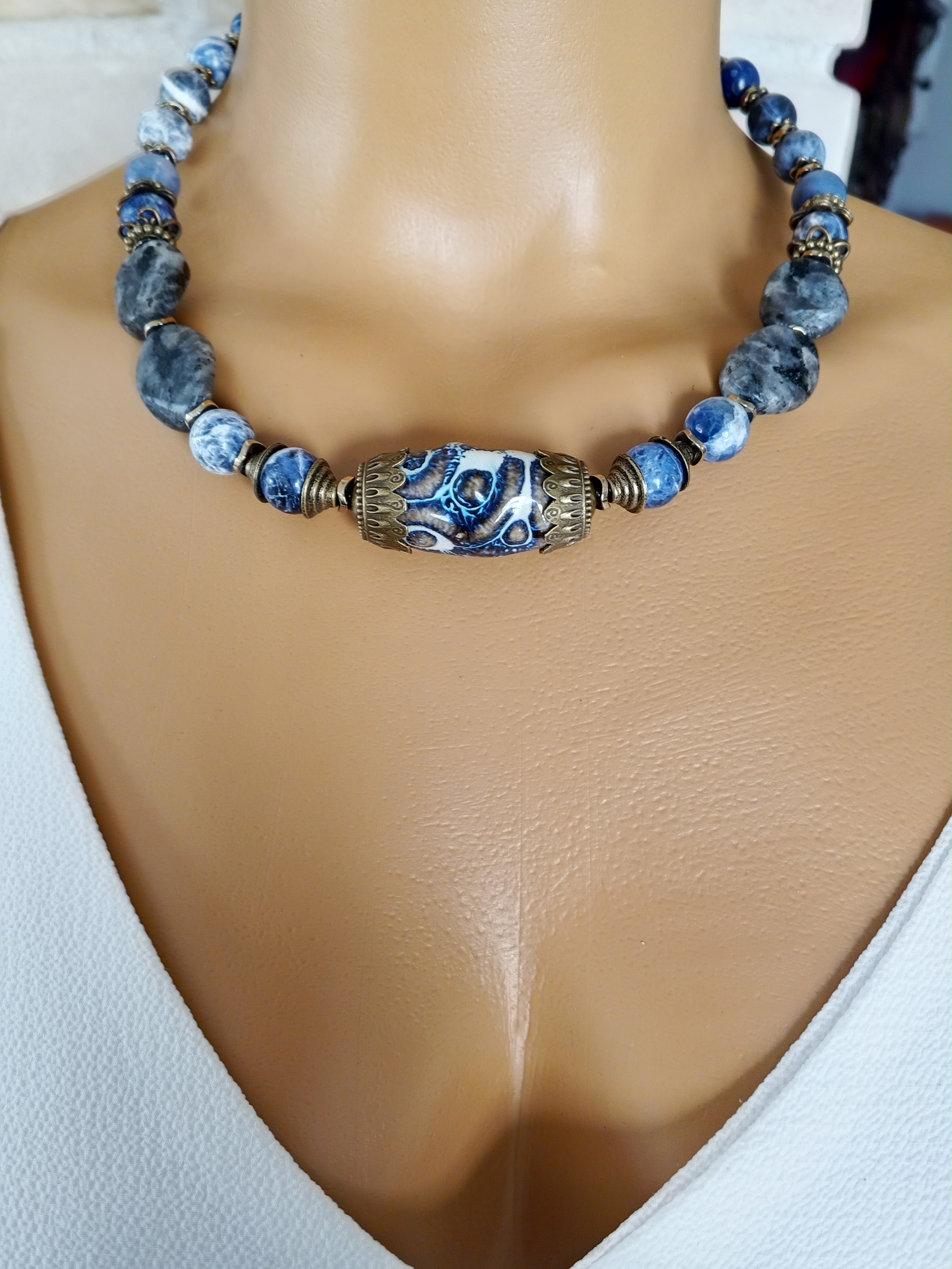 SODALİT VE SERAMİK KISA ŞIK KOLYE
