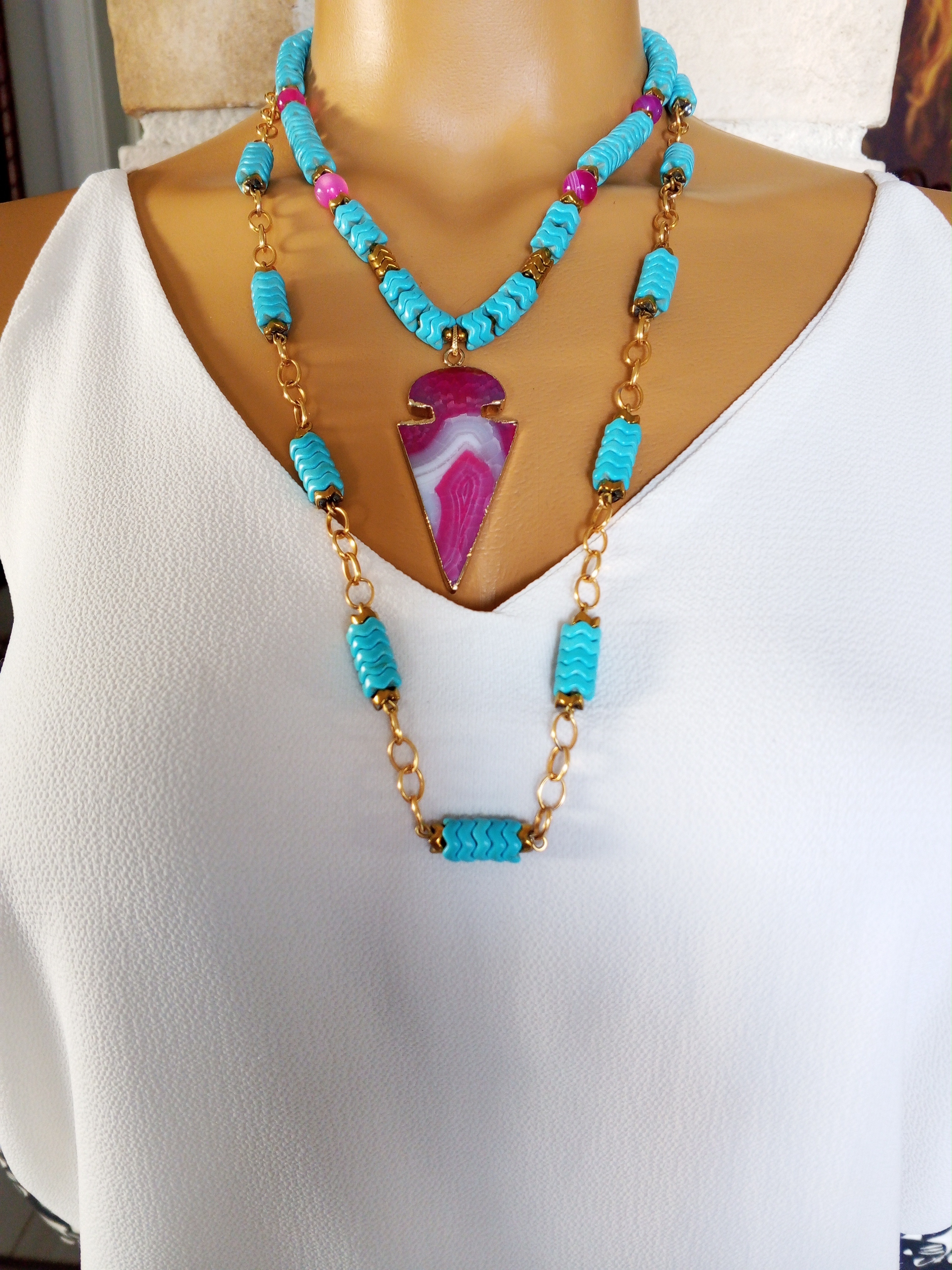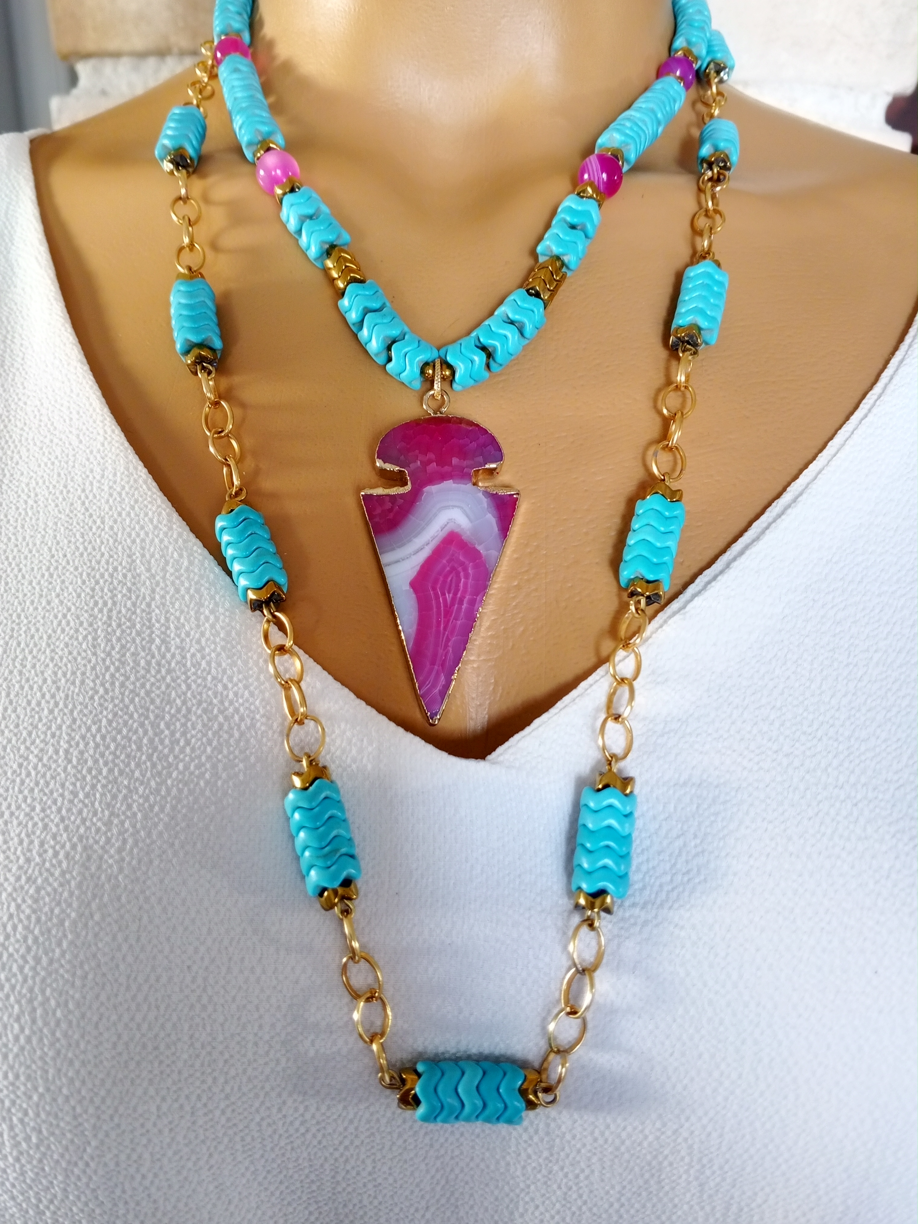 TUKUAZ VE AKİK İKİLİ KOLYE