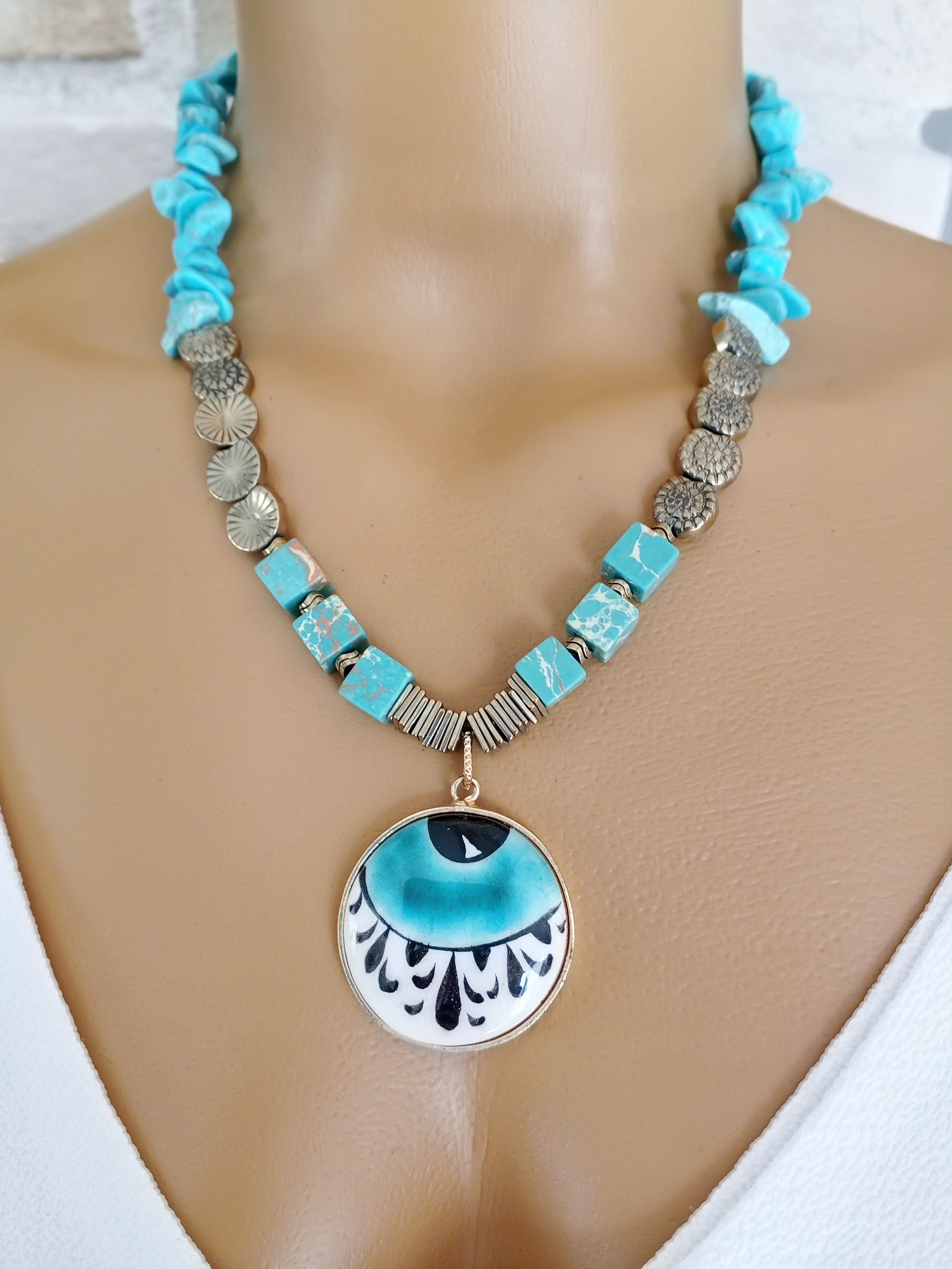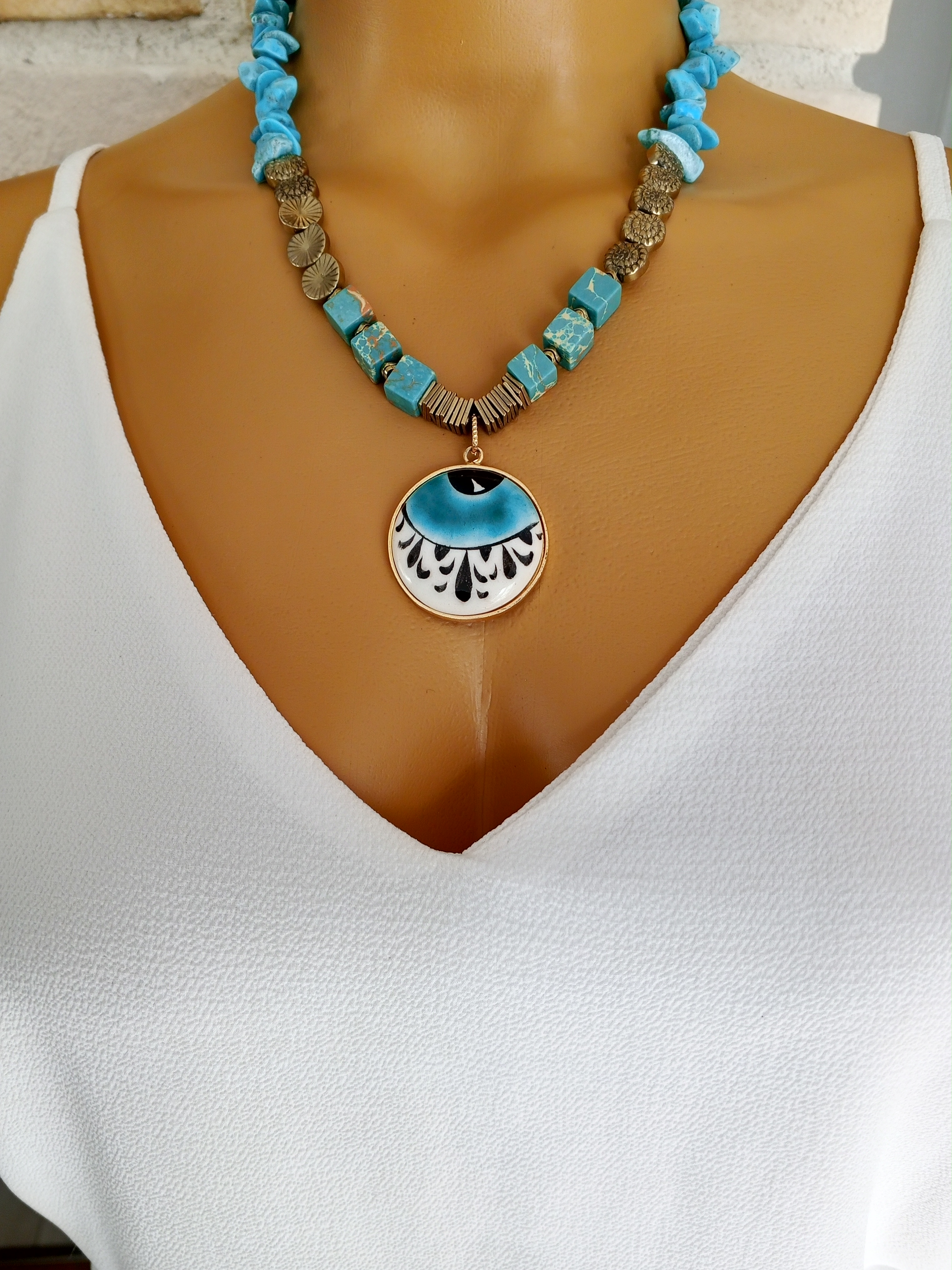 TURKUAZ VE HEMATİT TAŞI GÖZ KOLYE