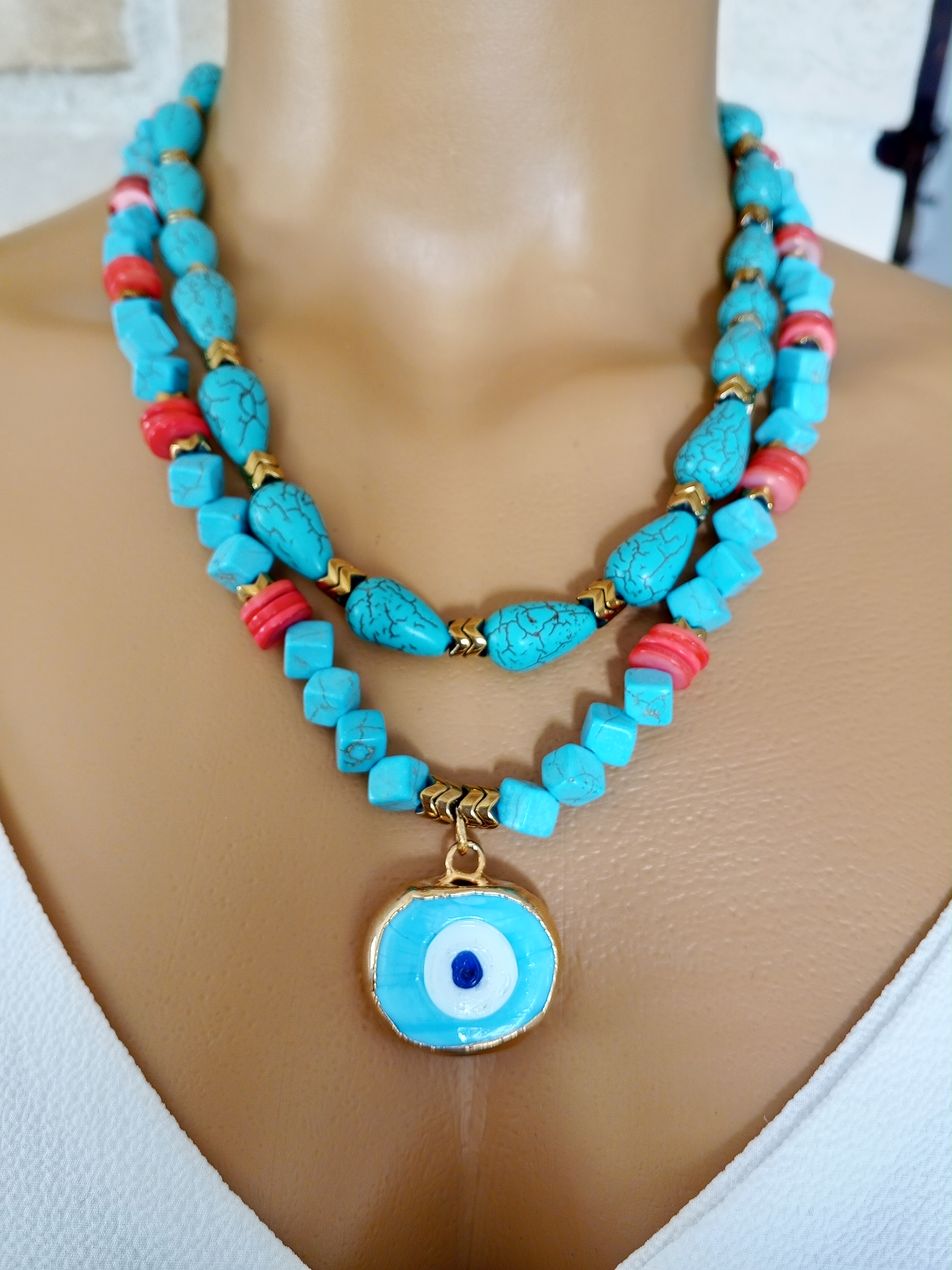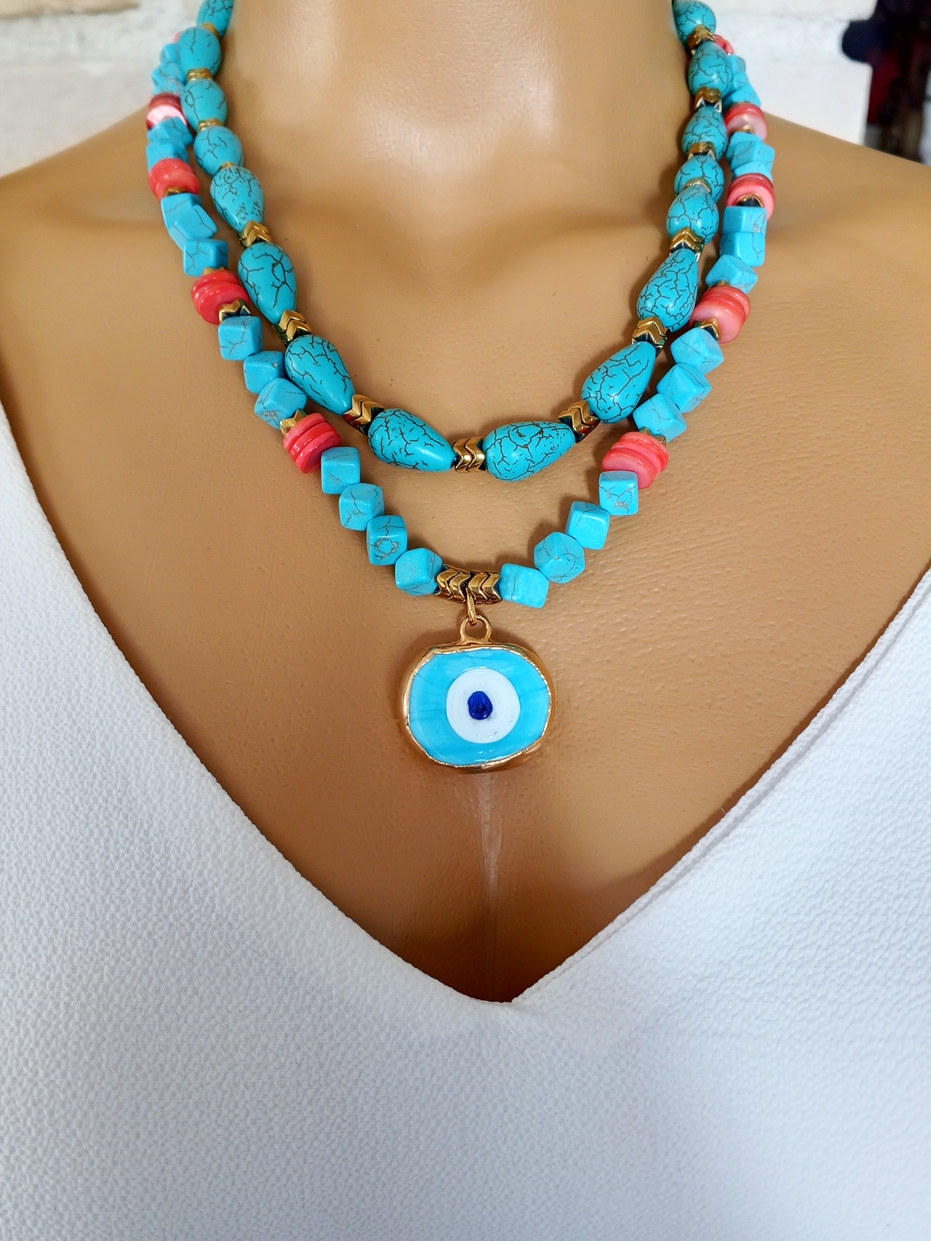 TURKUAZ VE NAZAR BONCUKLU KOLYE