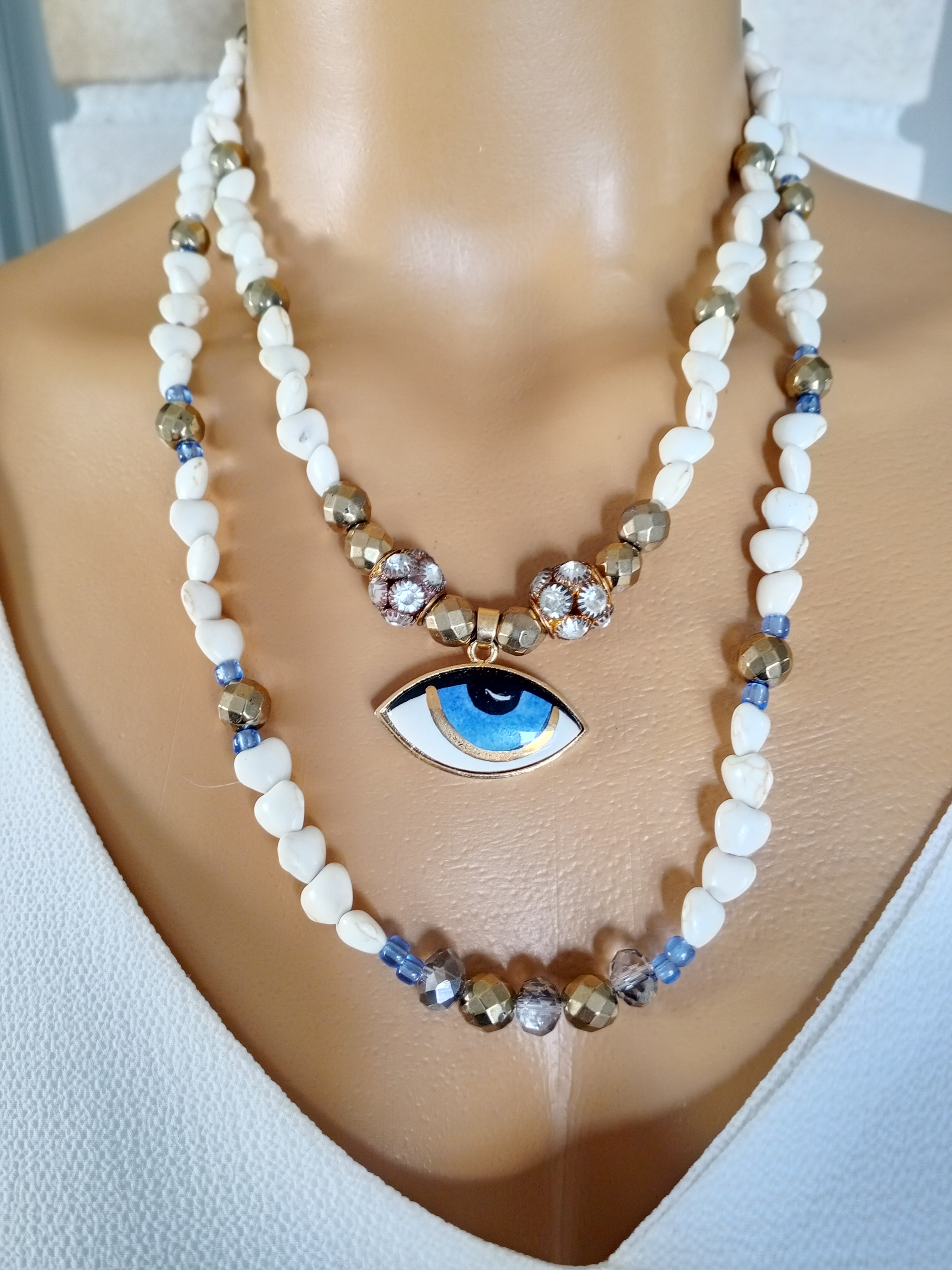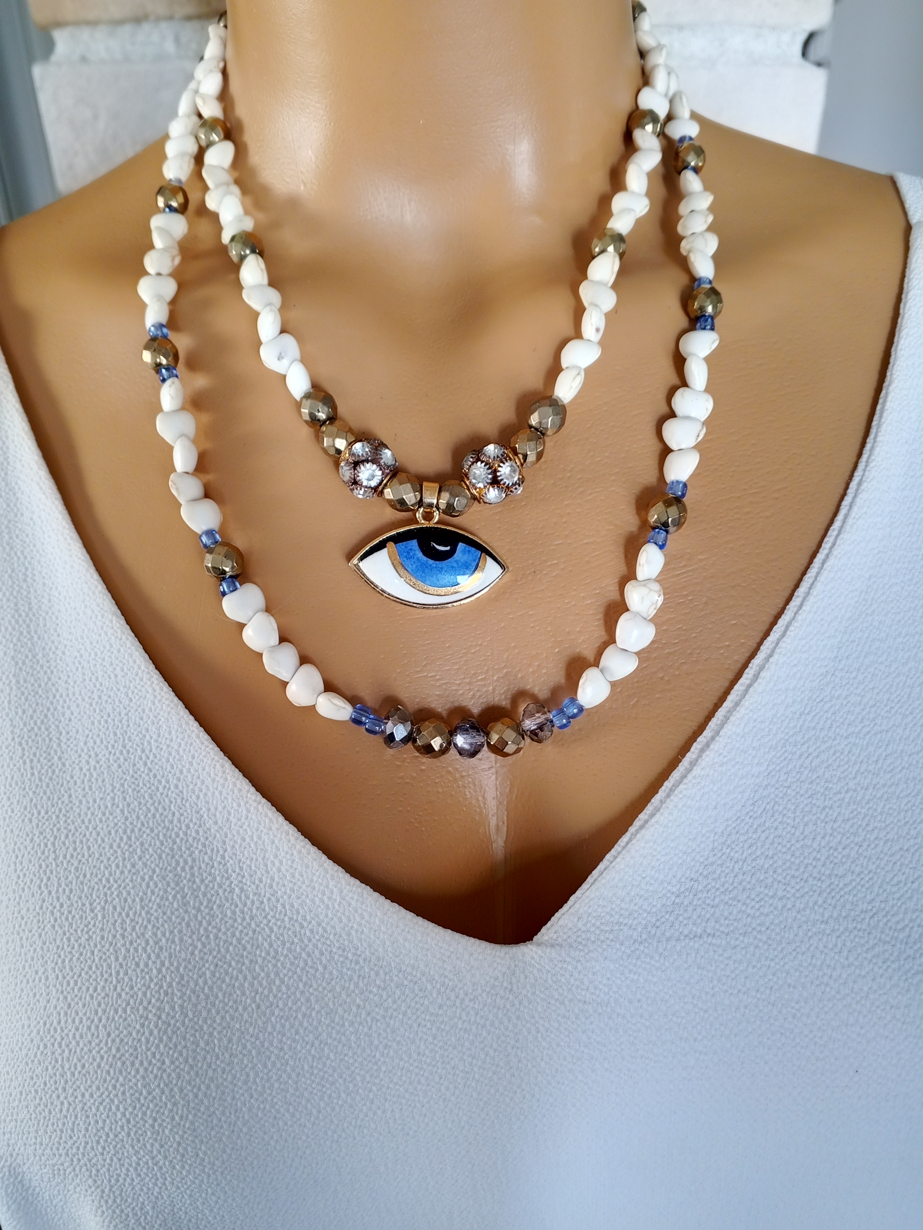 TURKUAZ, AKİK, HEMATİT VE SERAMİK GÖZ KOLYE