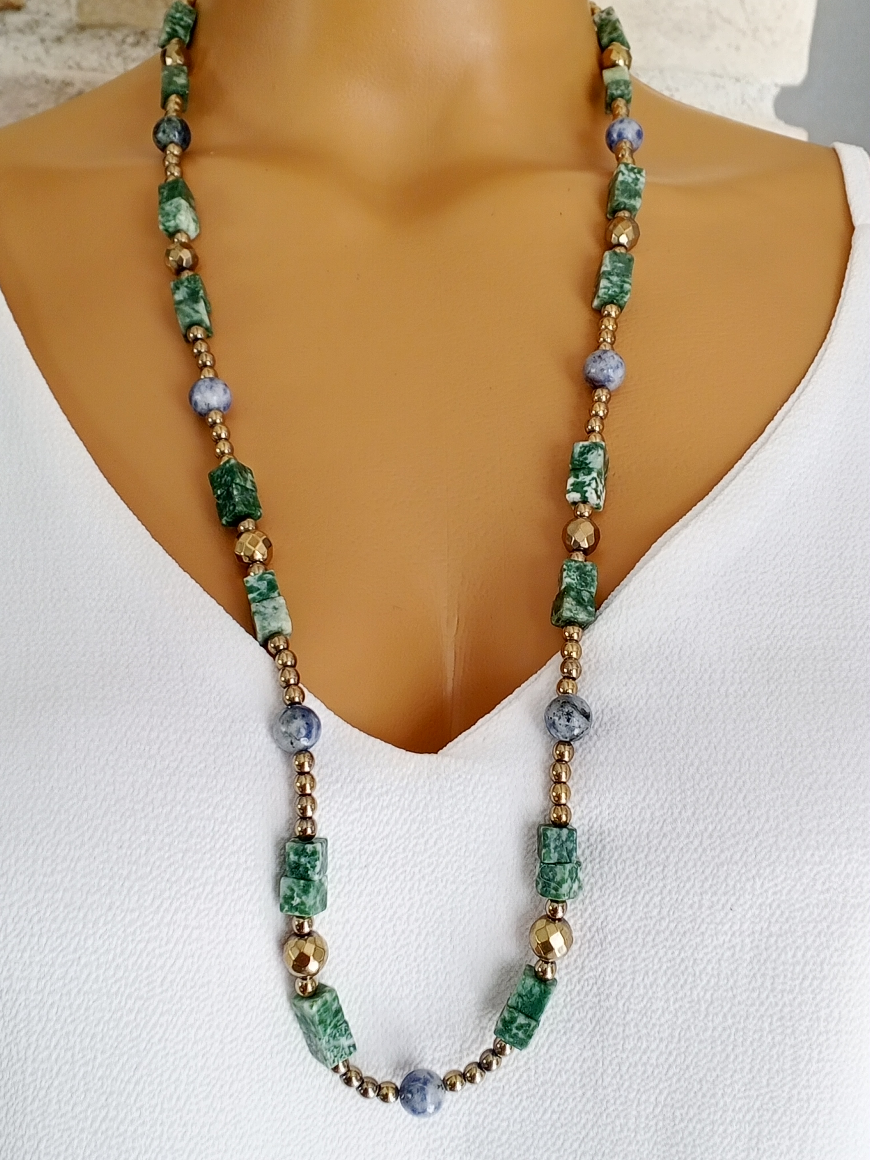 VARASİT, SODALİT, HEMATİT UZUN KOLYE