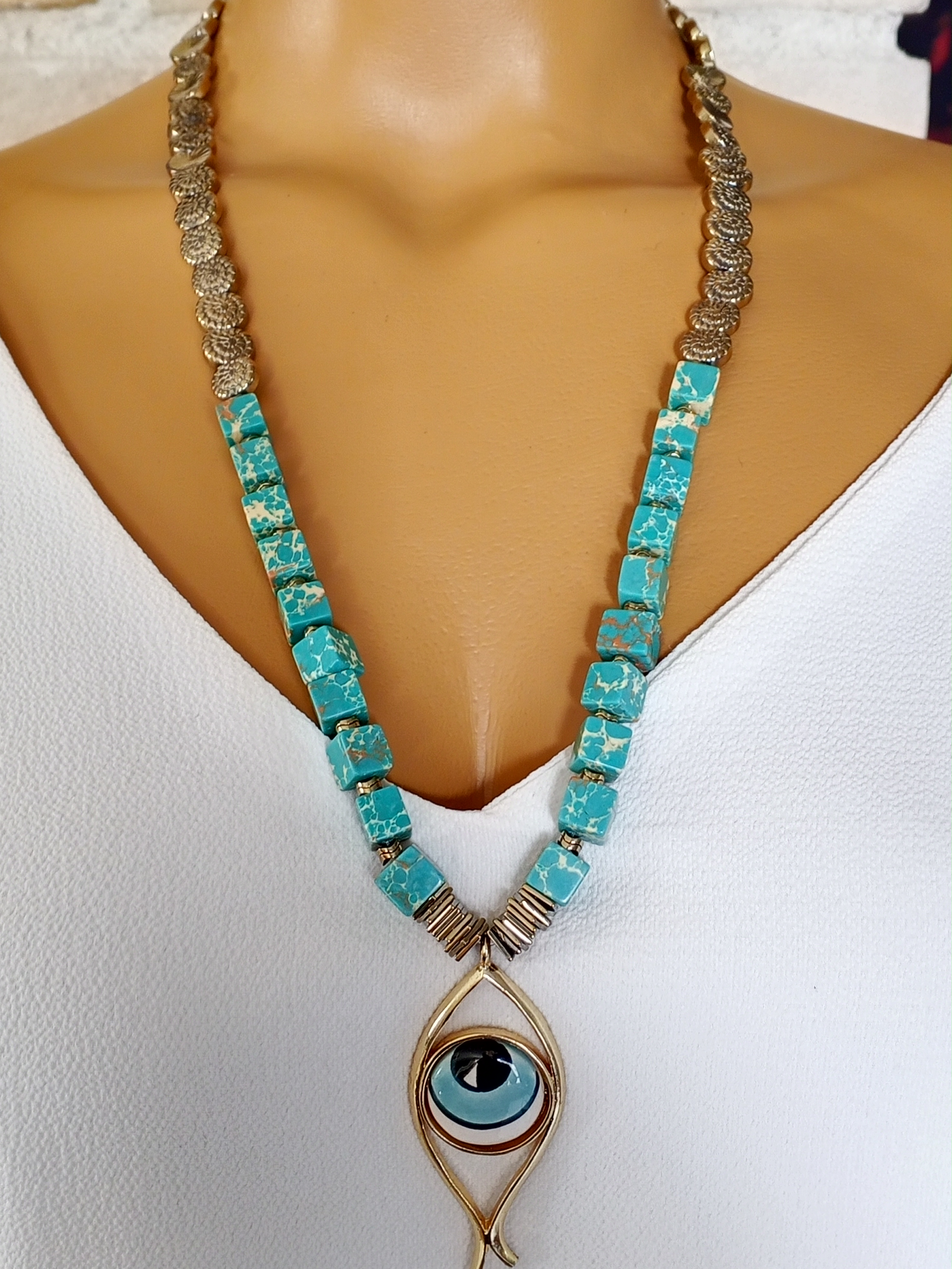 Bu kolyenin en önemli özelliği, yüksek kaliteli malzemelerle üretilmiş olmasıdır. Varasit taşları, doğal yapısı sayesinde enerji verici bir etki sağlar. Seramik parçalar ise dayanıklı ve hafif yapısıyla konforlu bir kullanım sunar. Her iki malzeme de uzun ömürlü olup, zamanla formunu koruyarak sizinle birlikte yolculuk yapacak.
