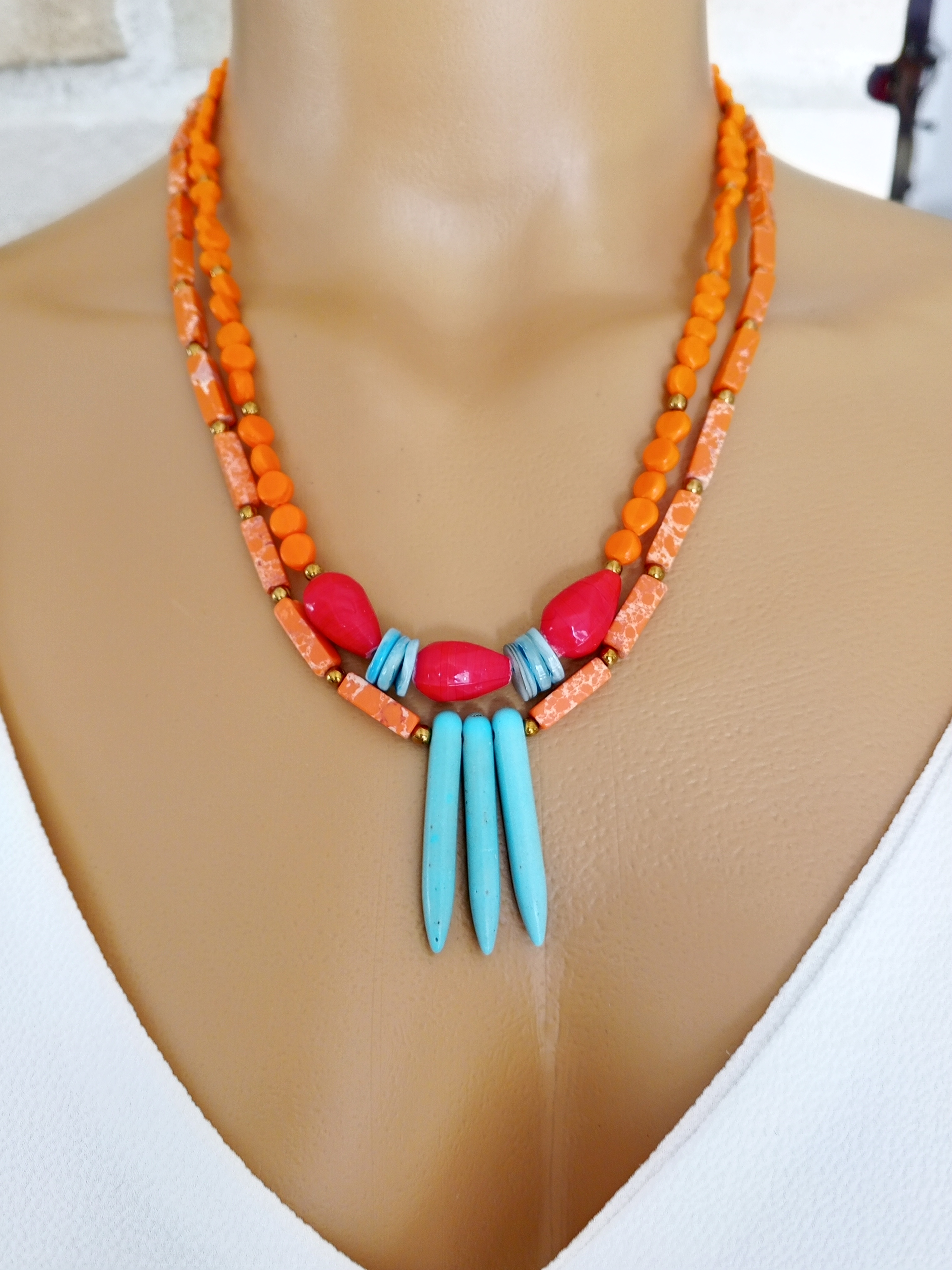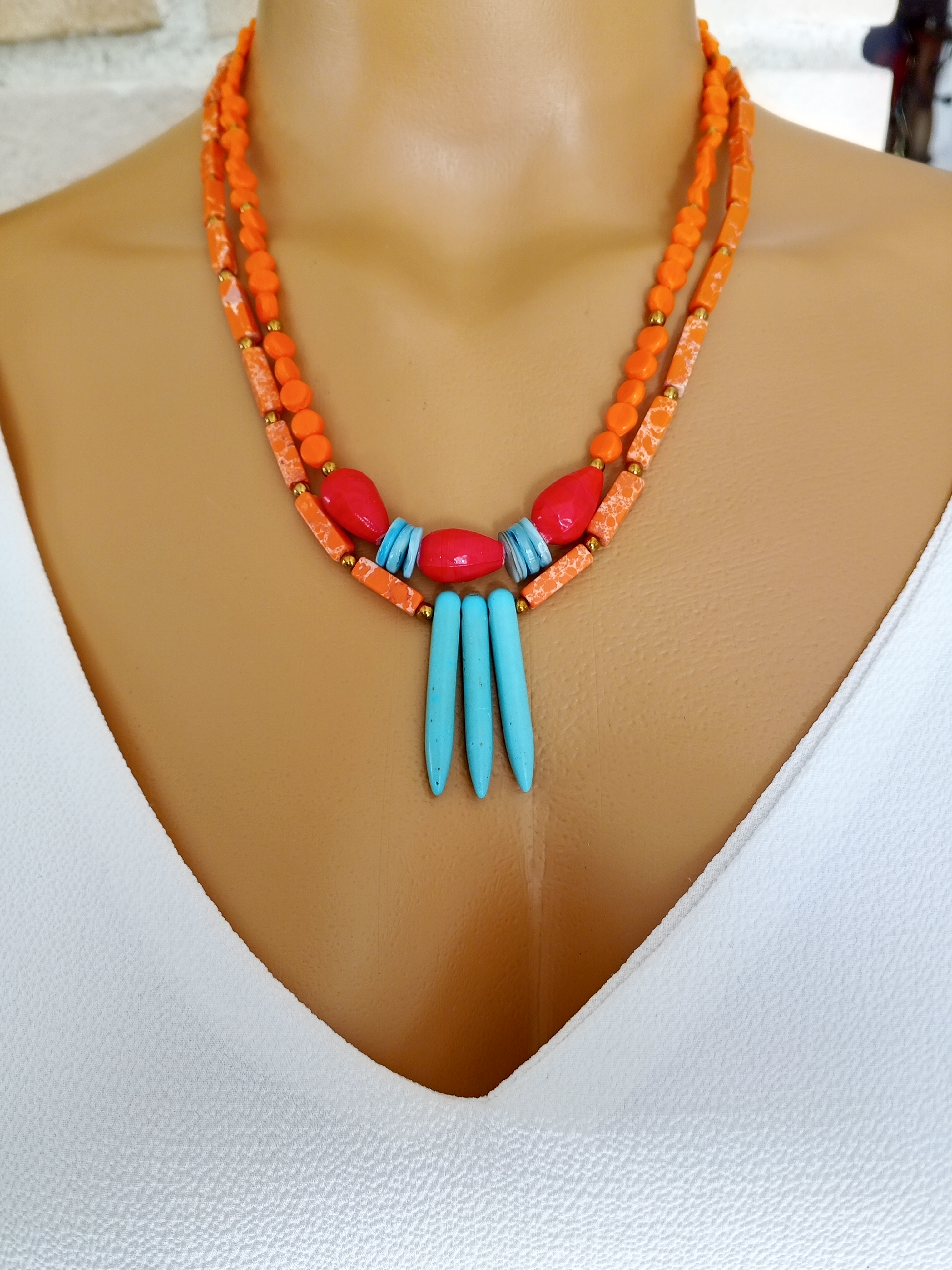 YAZLIL RENKLİ TURKUAZ KOLYE