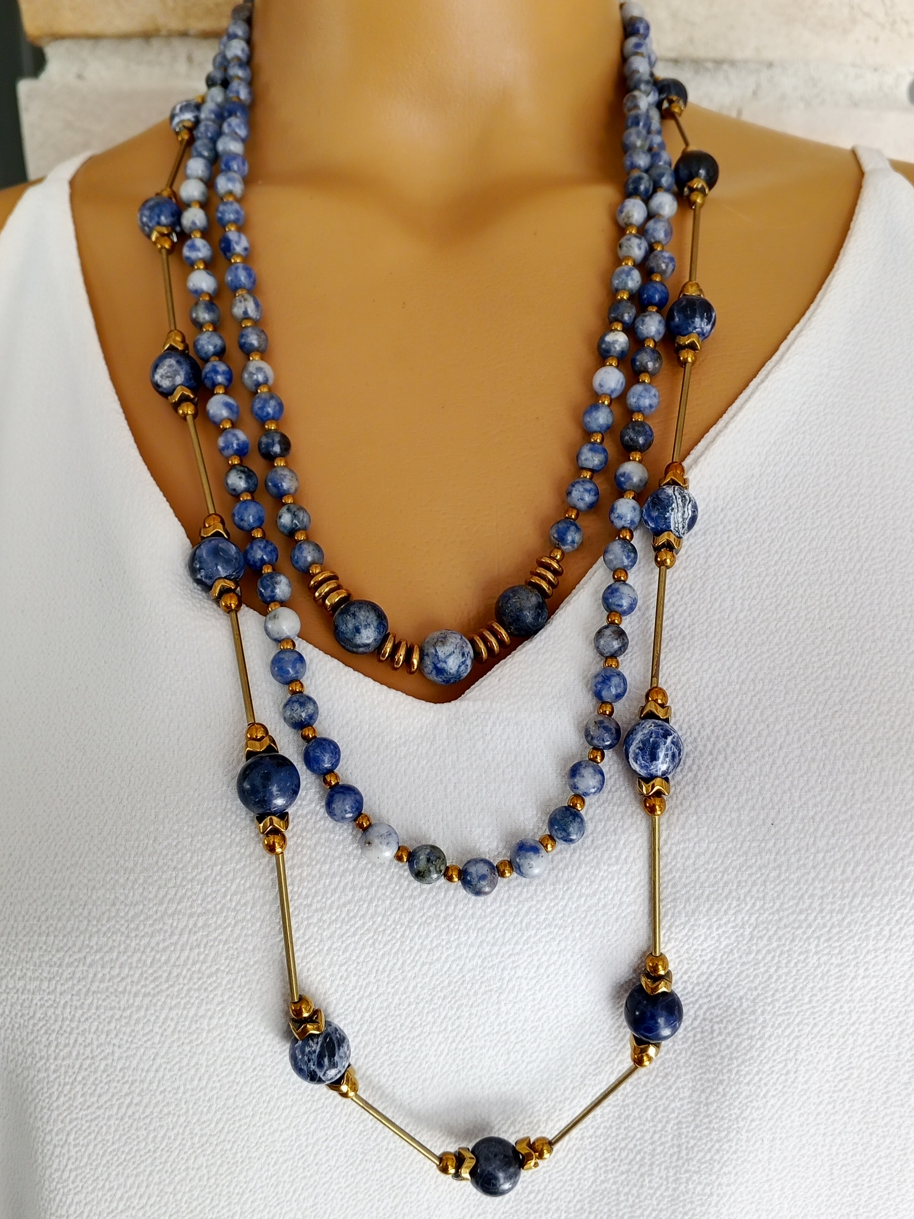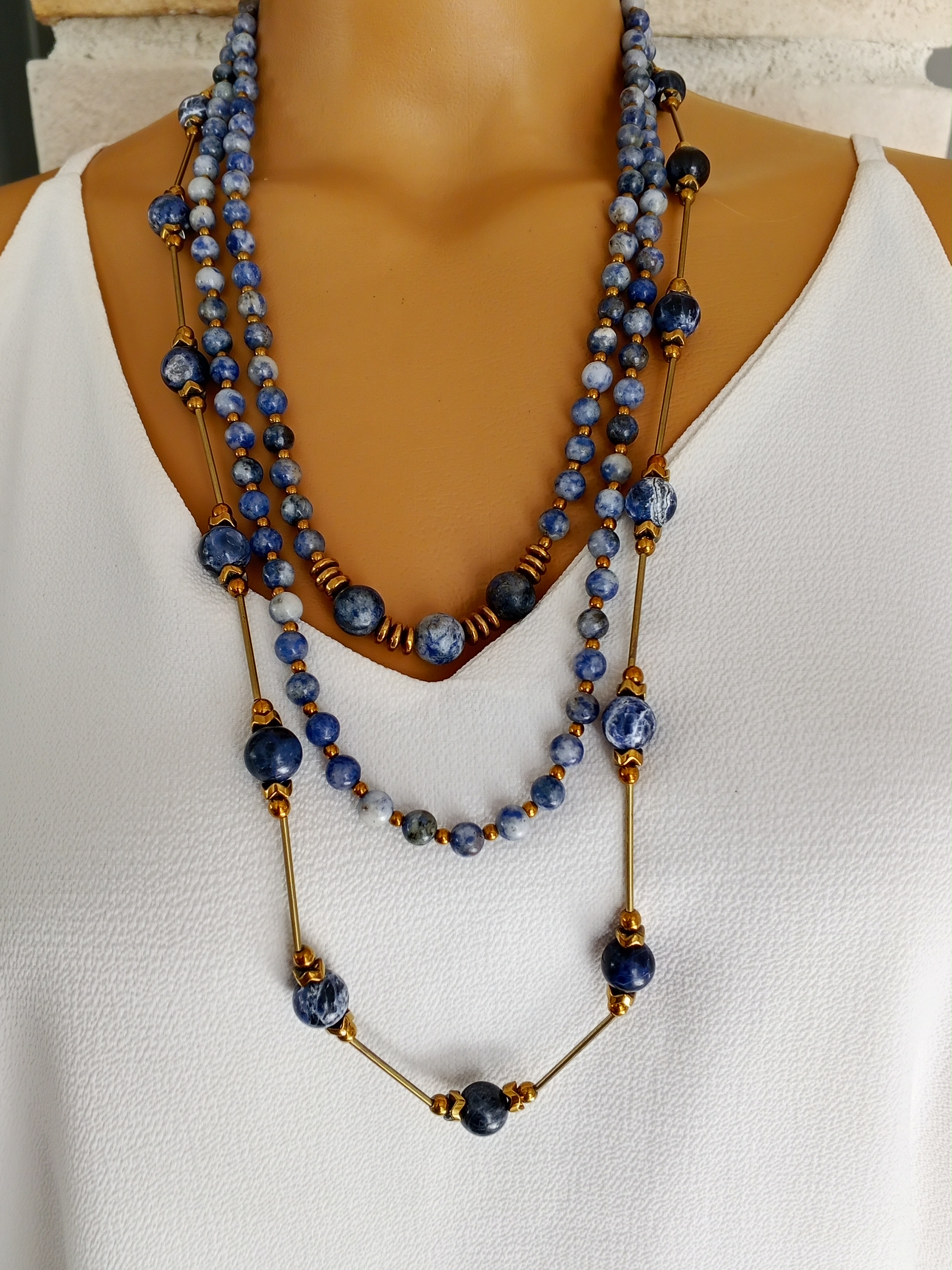 ZARİF ÜÇLÜ SODALİT DOĞALTAŞ KOLYE